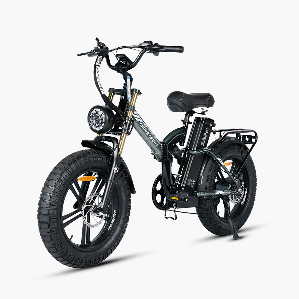 המרצדס של האופניים – RIDER SUPER SPORT, שילוב המושלם של כוח, סגנון ופונקציונליות. אופניים חשמליים שנועדו לשפר את חווית הרכיבה שלך, מצוידים בתכונות מובילות שייקחו את הרפתקאות הרכיבה שלך לגבהים חדשים. מצויד בבלמי שמן הידראוליים, סוללת 21Ah המבטיחה כוח אמין ועמיד לאורך זמן, צמיגי 20/4 אינץ’ מספקים אחיזה ויציבות מצוינים, תאורה קידמית המזכירה אופנועים ועוד תכונות מרשימות