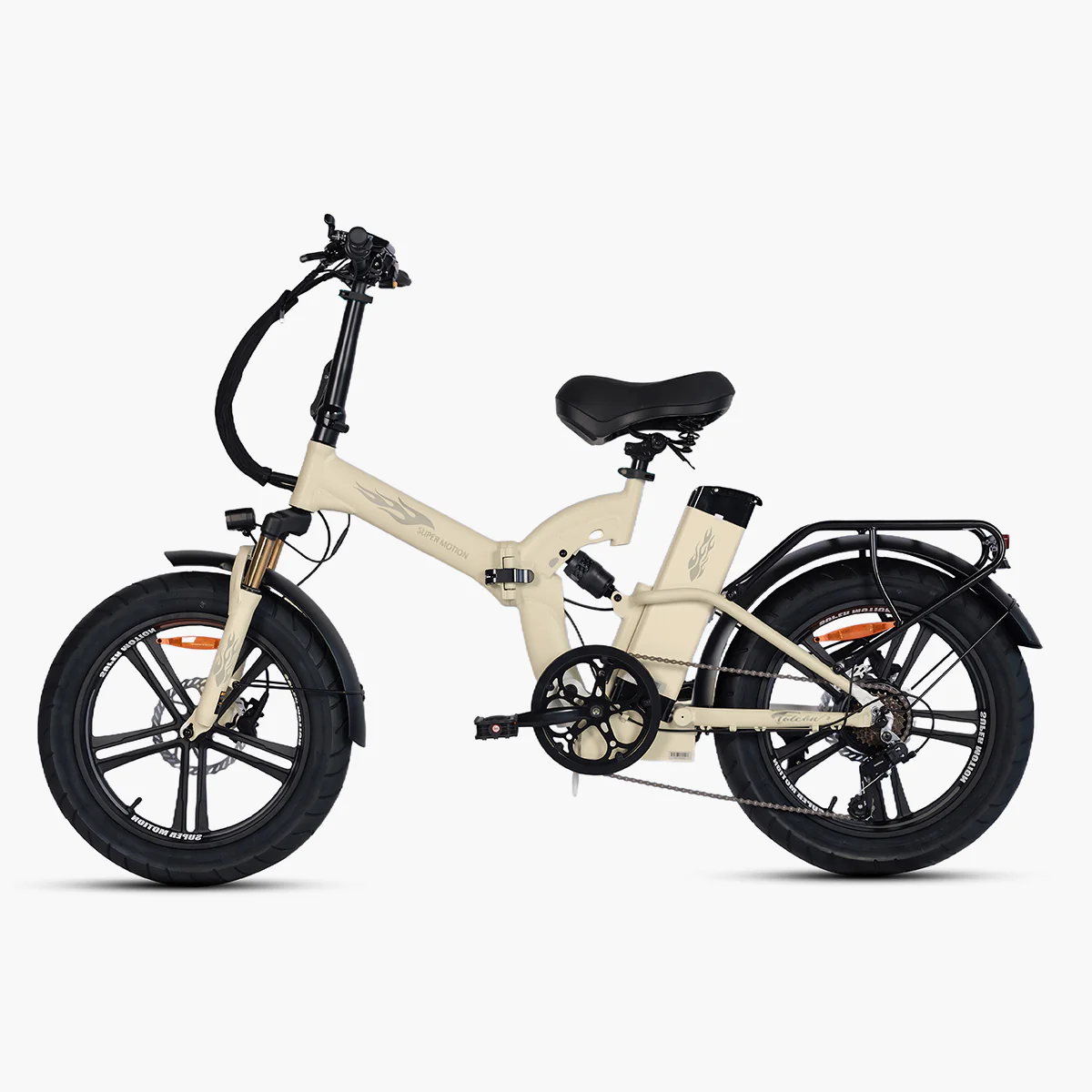 הכירו את FALCON SUPER MOTION – האופניים החשמליים המושלמים לרכיבה בעיר ובין ערים, עם סוללת 48V 18AH לטווח של עד 55 ק"מ. מצוידים בשיכוך מלא, בלמי דיסק הידראוליים קדמיים ואחוריים, וגלגלי מגנזיום בגודל 20 על 4 אינץ'. עם מסך דיגיטלי גדול, תאורת LED קדמית ואחורית, ומשקל נשיאה של עד 120 ק"ג, ה-SUPER MOTION מציעים שילוב מנצח של נוחות, עוצמה ובטיחות.