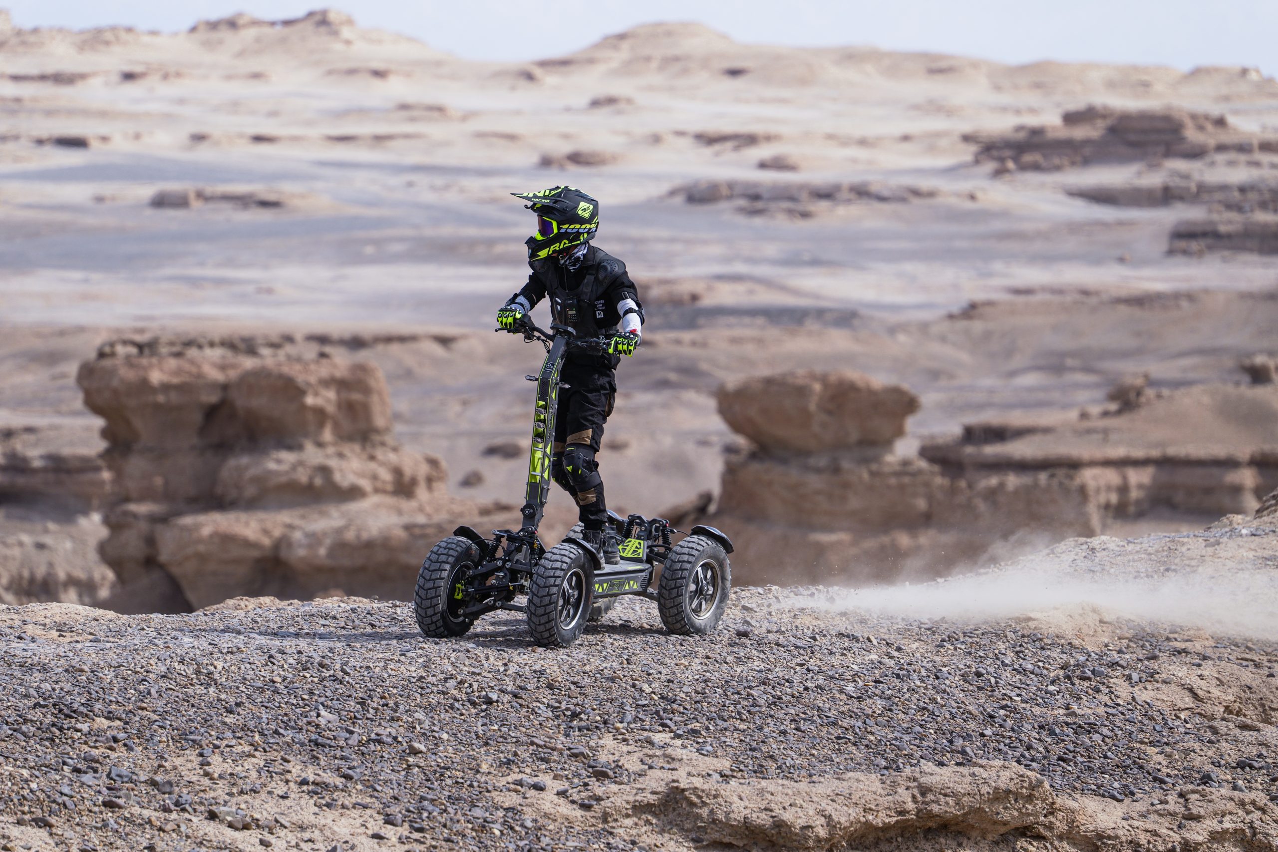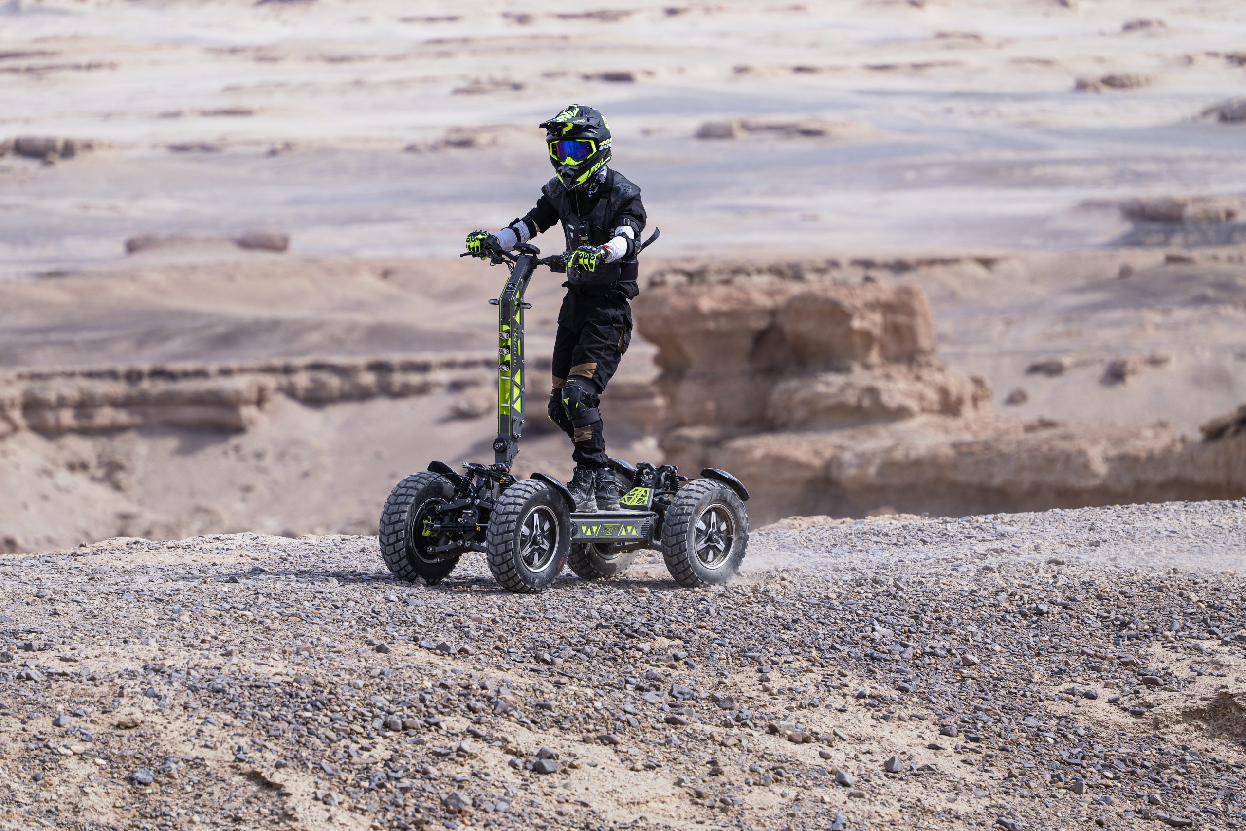 ה-GT4 הוא הקורקינט החשמלי האולטימטיבי לרכבי אקסטרים ושטח, שלב כוח, מידות וביצועים מתקדמים כדי להתמודד עם כל האתגר. עם מערכת הנעה עוצמתית, ארבעה גלגלים רחבים ומתלים משודרגים, ה-GT4 מתאים לנסיעות בשבילים קשים, עליות תלולות ושטחים לא סלולים, ומבטיח רכיבה סוחפת ובטוחה. עיצובו החזק והמאסיבי יחד עם הטכנולוגיה החדשנית המאפשרת לרוכבים להרגיש חופשיים ומוגנים גם בתנאי שטח קשים, כששומר על יציבות ושליטה מירבית. אם אתם מחפשים קורקינט יכול הרפתקה ולהעניק לכם בכל תחושת חופש מוחלטת – ה-GT4 הוא הבחירה המושלמת עבורכם.